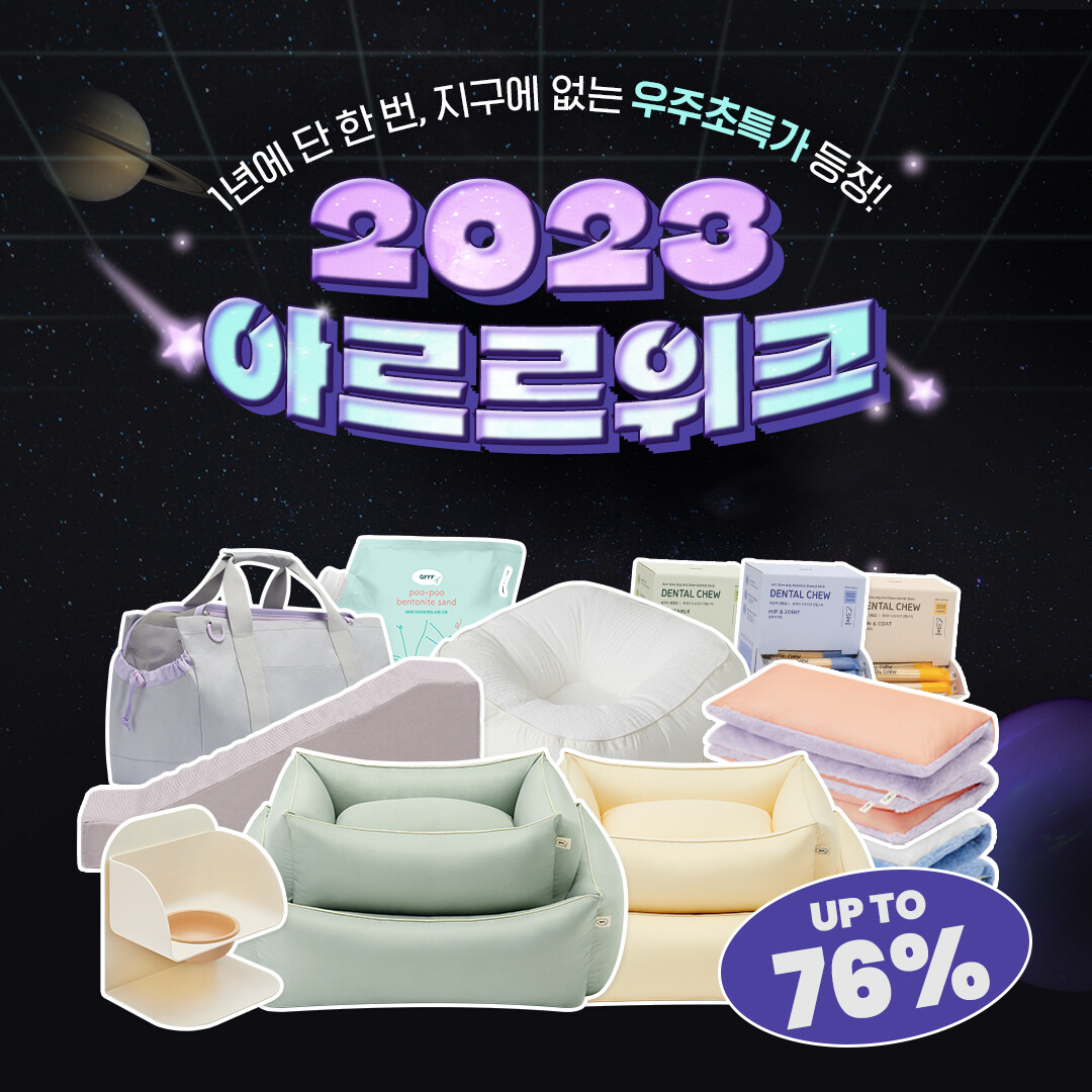 1년에 단 한 번 진행되는 ‘아르르 위크’는 간식류와 실내용품, 외출용품 등 250여 반려동물 상품을 최대 76% 할인된 가격에 제공한다. 또 경품 이벤트와 타임딜, 적립금 지급 등 다양한 혜택을 누릴 수 있다.