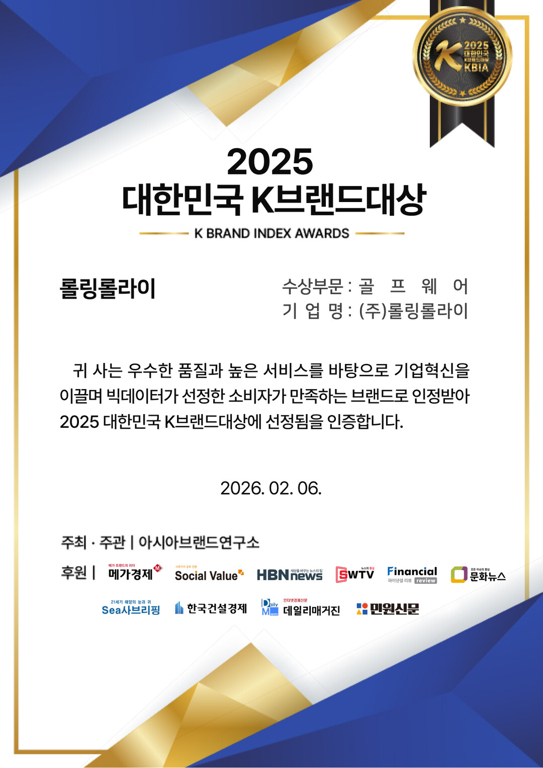 조유안 롤링롤라이 대표는 “이번 2년 연속 선정은 롤링롤라이의 브랜드 방향성과 가치가 시장과 고객으로부터 확실한 신뢰를 받고 있다는 의미”라며 “우리는 골프에 머무르지 않고 글로벌 시장 진출을 시작으로 스포츠 전반으로 영역을 확장해 나가고 있다”고 수상 소감을 밝혔다.