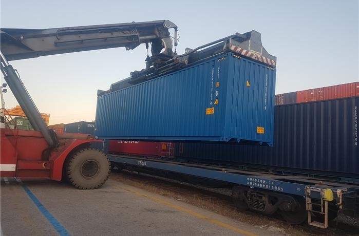 | ▲ 철도화물 진동저감장치를 탑재한 컨테이너 운송 시험 모습 |