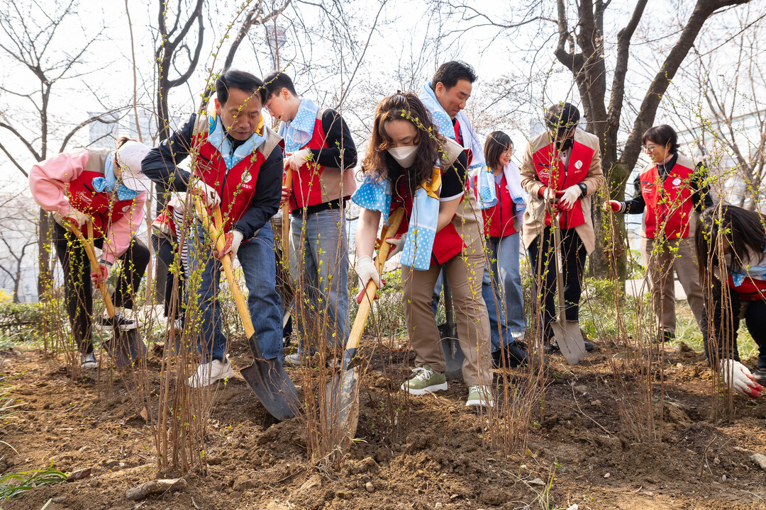 이날 롯데월드 임직원들은 식재에 앞서 나무 심기의 중요성과 환경보호 의식에 대해 배우고, 식재 방법을 숙지해 조팝나무와 남천나무 등 약 200여주를 심었다.