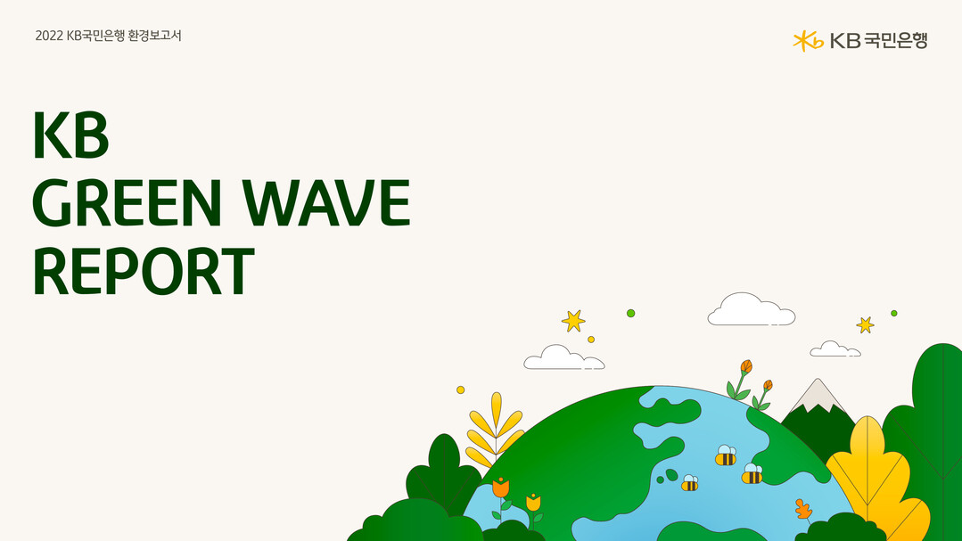 2020년부터 발간된 KB Green Wave Report는 KB국민은행의 ESG 전략 가운데 ‘기후변화 대응’과 ‘책임투자 이행’을 연계해 기술한 환경보고서다. 이해관계자들에게 KB국민은행의 환경 관련 정보를 투명하게 공개하고 앞으로 추구하려는 ESG 방향성을 공유하고 있다.