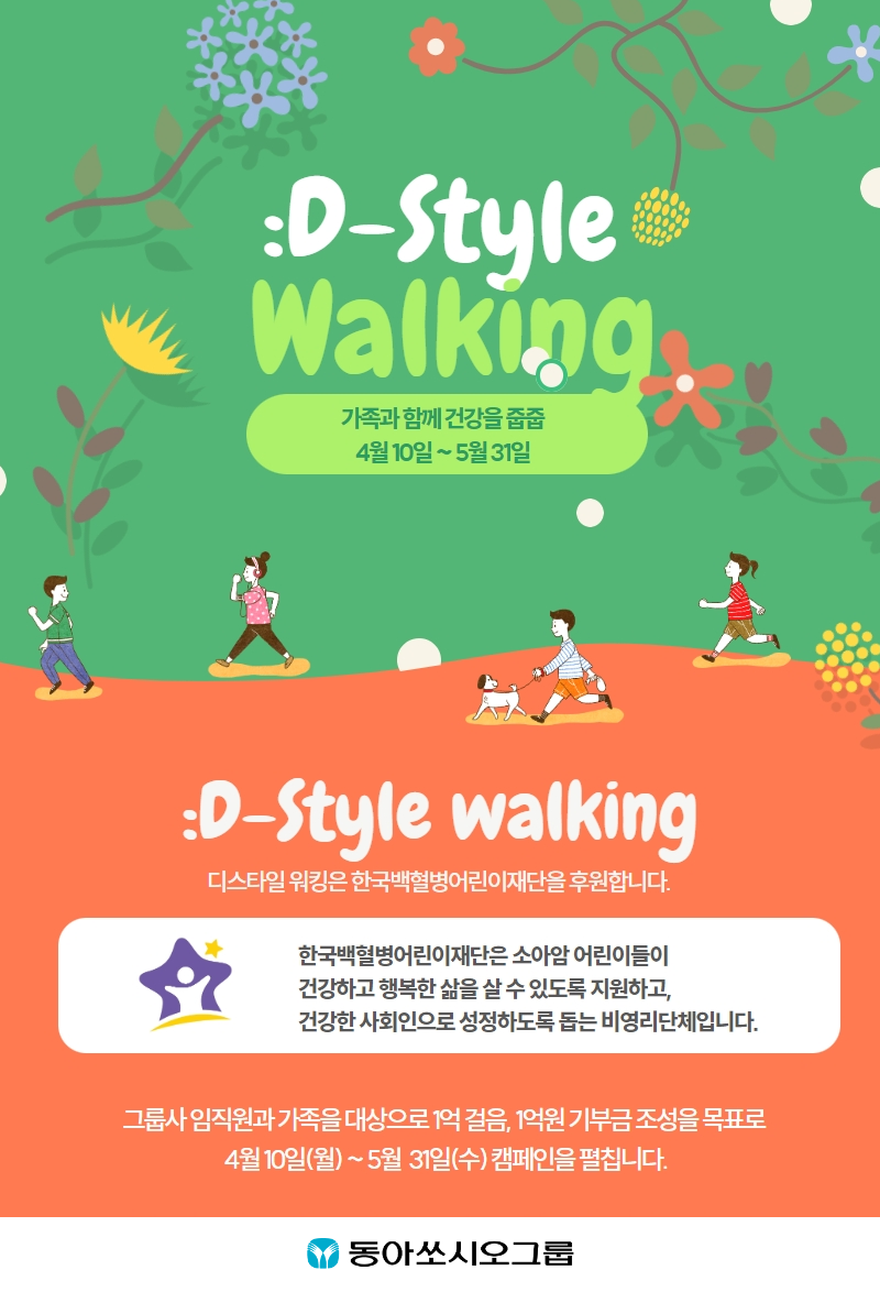 | 걸음으로 기부하는 디스타일 워킹 캠페인을 실시한다. [사진=동아쏘시오그룹] |