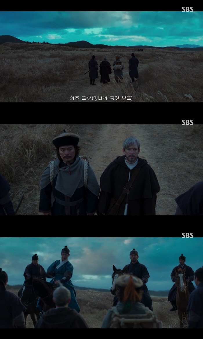 이날 '조선구마사'는 1부와 2부로 나뉘어 방영됐다. 제작진은 1부 초반, 충녕대군 일행이 구마 사제를 만나러 간 장면에서 '의주 근방 (명나라 국경 부근)'이라고 자막으로 표시했다.