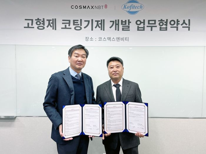 17일 코스맥스엔비티와 코피텍에 따르면, 양 사는 지난 13일 경기도 성남시 코스맥스엔비티 본사에서 협약식을 갖고 건기식 코팅기제 공동 개발에 합의했다.
