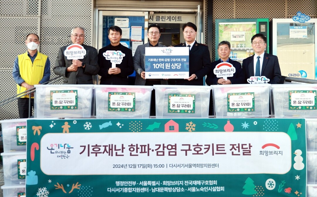 [하비엔뉴스 = 박정수 기자] 희망브리지 전국재해구호협회는 노숙인·쪽방 주민·장애인 등 기후재난 취약계층의 겨울나기를 위해 한파·감염 구호키트(온담꾸러미) 1만4906세트(10억원 상당)를 지원한다고 18일 밝혔다.