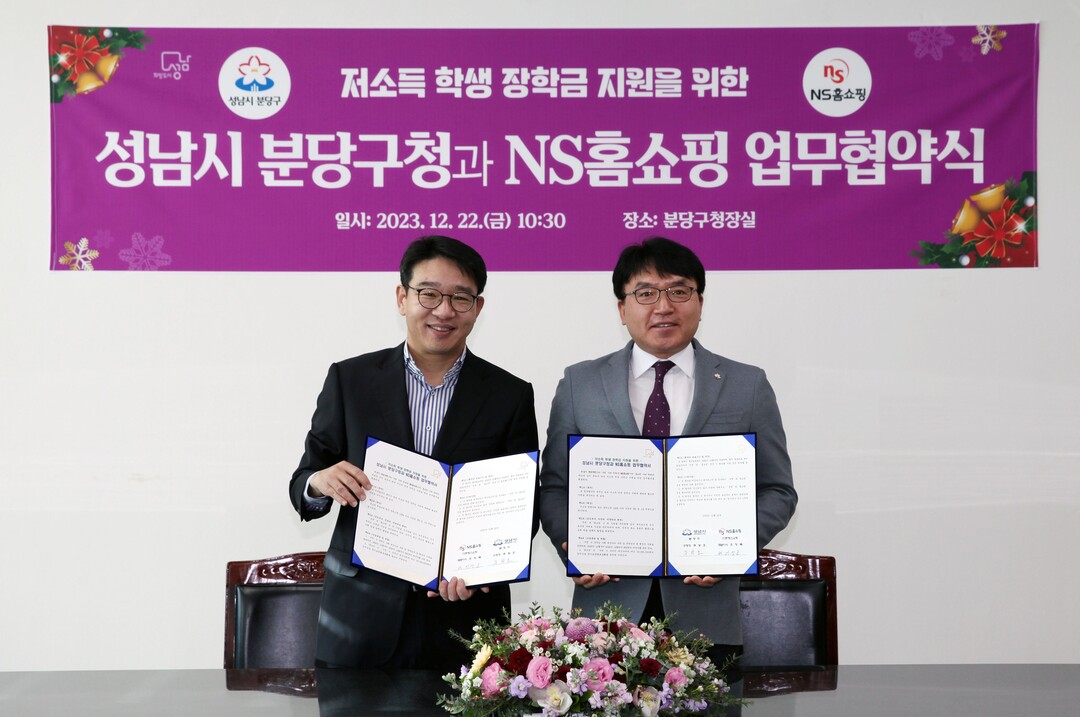 [하비엔뉴스 = 윤대헌 기자] NS홈쇼핑은 지난 22일 경기도 분당구와 ‘장학금 후원’을 위한 업무협약을 맺었다고 26일 밝혔다.