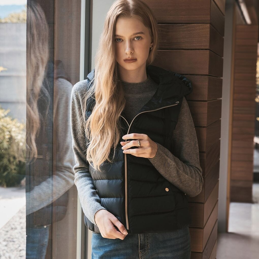 '슬림다운 경량재킷'과 '슬림다운 경량후드베스트'는 금색 컬러 지퍼와 금장 로고 포인트를 적용해 캐주얼한 무드에 고급스러움을 더했으며, 다양한 이너웨어와 레이어드 스타일링에 용이하다.