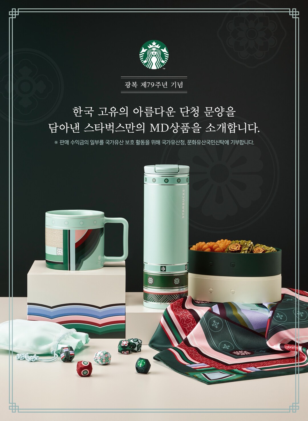 스타벅스는 이번 광복절 기념 상품의 판매 수익금 일부를 국가유산 보호활동을 위한 기금으로 조성해 전달할 예정이다.