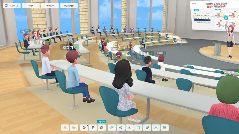 이밖에도 야외공간에서는 아바타를 활용해 근접 화상 대화 기능이 가능해 생동감 있는 커뮤니케이션이 가능하다. 마이룸에서 일정 확인 및 빠른 입장, 아바타 꾸미기 등을 할 수 있고 VIP 공간인 마이라운지에서는 회의실처럼 화상회의, 자료 공유 등이 가능하다.
