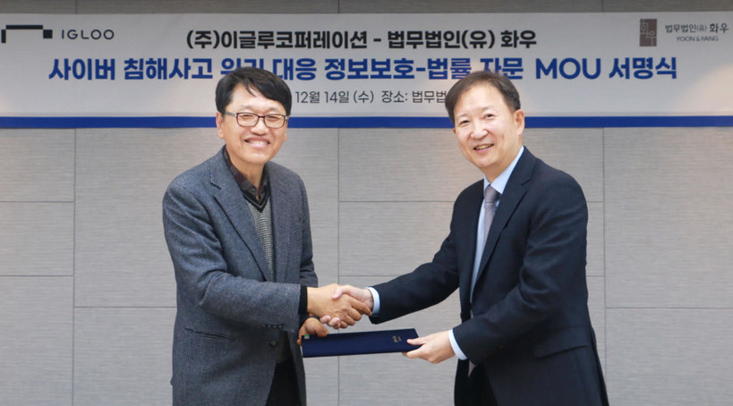 시큐리티·인텔리전스 기업인 이글루코퍼레이션은 지난 14일 법무법인 화우와 ‘법률자문·정보보호 서비스 상호협력’에 관한 양해각서를 체결했다고 밝혔다.