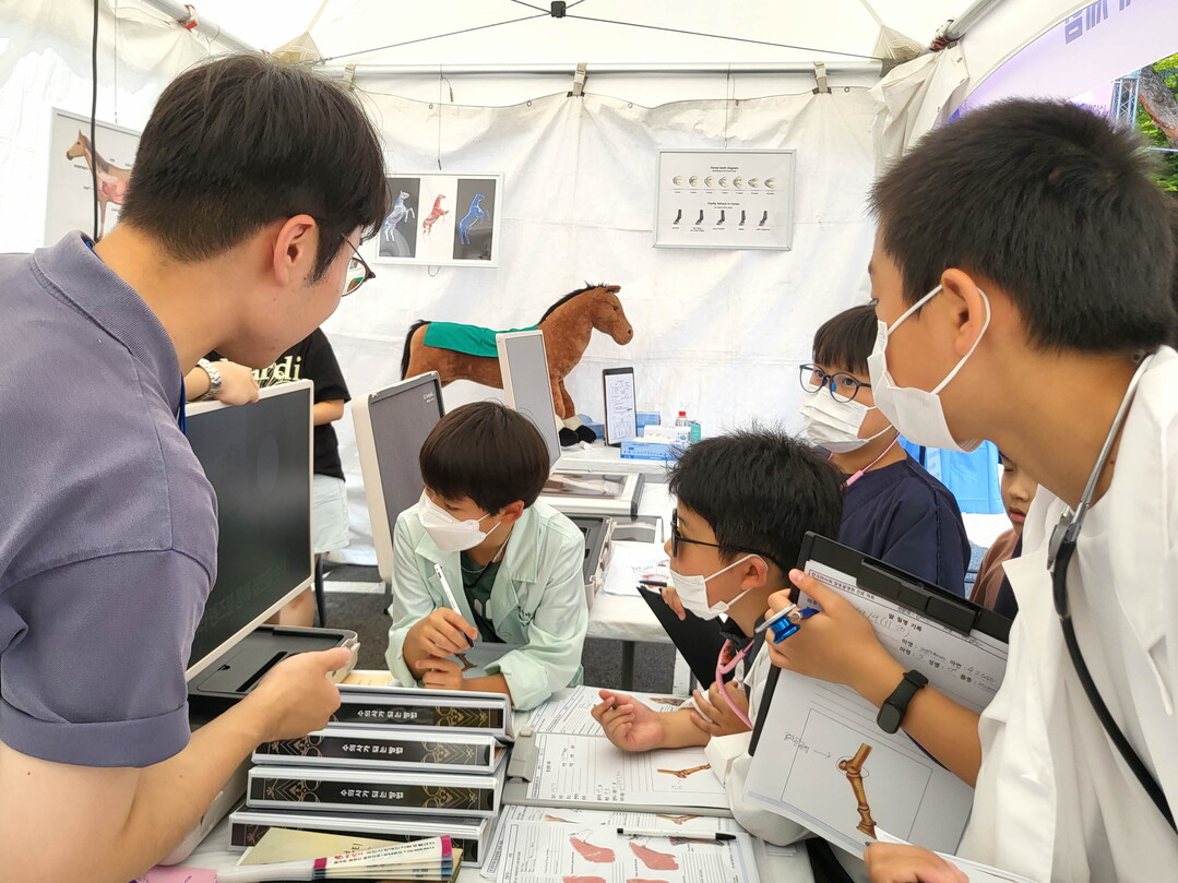 우선 유치원생부터 초등학교 저학년을 대상으로 한 ‘말 건강을 더해~, 말 동물병원 체험’은 현장에서 QR코드로 예약할 수 있고, 아이들은 말 전문 수의사로 변신해 붕대감기, 심장박동 측정, 말 상식 OX퀴즈 등을 체험한다.