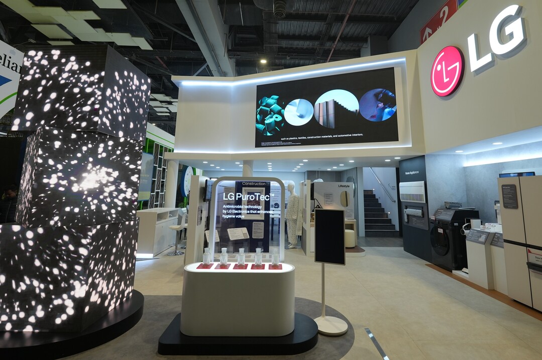 LG전자는 전시관 전면에 총 5개의 퓨로텍 라인업을 내세우고, 이를 적용한 다양한 제품들을 체험할 수 있도록 부스를 조성했다. 세탁기·냉장고·에어컨·청소기·정수기 등 가전을 비롯해 건축자재, 위생용품, 식품포장, 의료장비 등 생활 밀착형 제품군에 퓨로텍이 적용된 사례를 소개했다. 또한 B2B 고객들을 위해 별도의 미팅 공간을 마련하고 맞춤형 솔루션 상담도 진행한다.