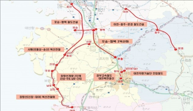 | 충청권 관내 건설사업 현황. [자료=국가철도공단] |