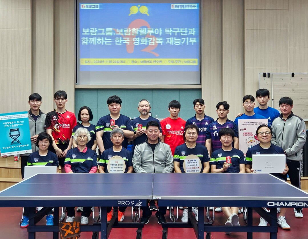 3일 보람그룹에 따르면, 실업탁구단 보람할렐루야는 지난달 22일과 23일 양일간 충남 천안 보람할렐루야 훈련장에서 ‘영화인 대상 탁구 재능기부 행사’를 실시했다.