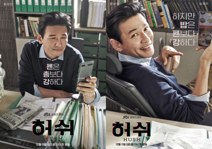 오는 12월 11일 첫 방송되는 JTBC 새 금토드라마 ‘허쉬’(연출 최규식, 극본 김정민, 제작 키이스트·JTBC 스튜디오)는 펜대보다 큐대 잡는 날이 많은 ‘고인물’ 기자 한준혁(황정민 분)과 밥은 펜보다 강하다는 ‘생존형’ 인턴 이지수(임윤아 분)의 쌍방 성장기이자, 월급쟁이 기자들의 밥벌이 라이프를 그린다. 황정민, 임윤아를 비롯한 손병호, 김원해, 박호산, 이승준, 유선 등 연기파 배우들이 대거 합류해 하반기 최고의 기대작으로 손꼽히고 있다.