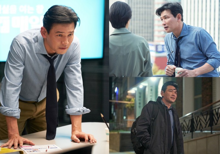 황정민이 선택한 ‘허쉬’의 한준혁은 한때 열정 충만한 베테랑 기자였지만 이제는 관심보다 무관심으로, 똘기보다 취기로 버티는 ‘고인물’ 기자다.