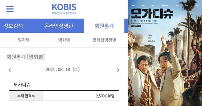 | ▲영화 '모가디슈' 개봉 22일째 250만 돌파 /영화진흥위원회 통합전산망, NEW |