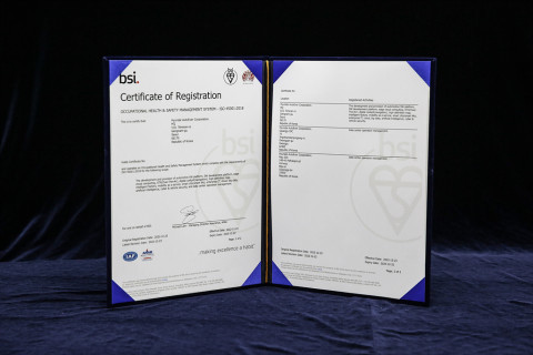 ISO 45001은 국제표준화기구에서 지난 2018년 3월 제정한 표준으로, 사업장에서 발생할 수 있는 각종 위험을 예방하는 안전보건관리 분야 최고 수준의 국제 인증이다. 인증기관은 안전보건경영시스템 구축 적정성과 효율적 운영 여부에 관한 서류 및 현장 심사를 거쳐 인증서를 발급한다.