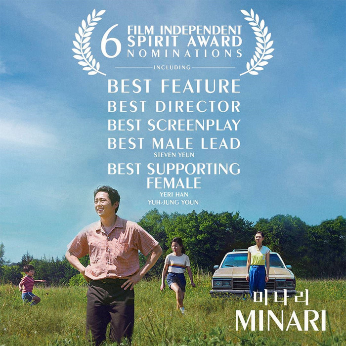 뿐만 아니라 미국 영화 연구소(AFI)에서 올해의 영화상을 수상한 <미나리>가 '독립영화계 오스카'로 불리는 필름 인디펜던트 스피릿 어워즈(FISA)에서 작품상, 감독상, 남우주연상, 여우조연상, 각본상 후보에 선정되었다.