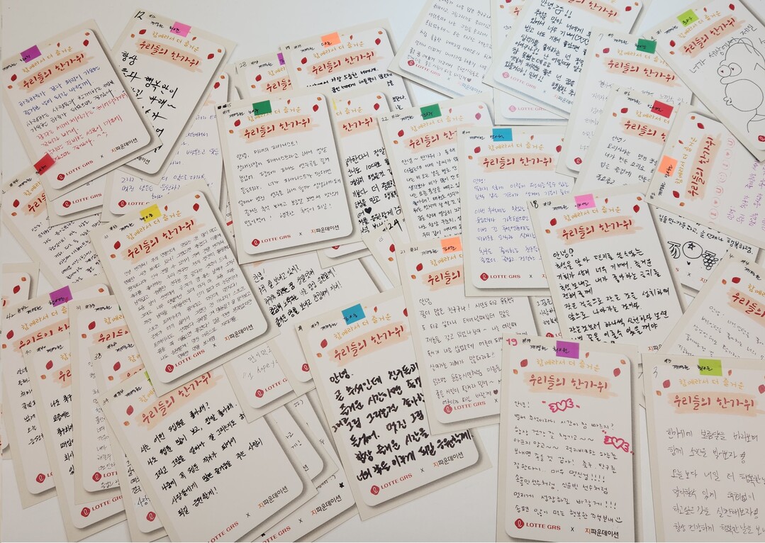 | 롯데GRS 임직원이 아동들에게 따뜻한 온정을 전하고자 직접 손편지를 작성해 전달했다. [사진=롯데GRS] |