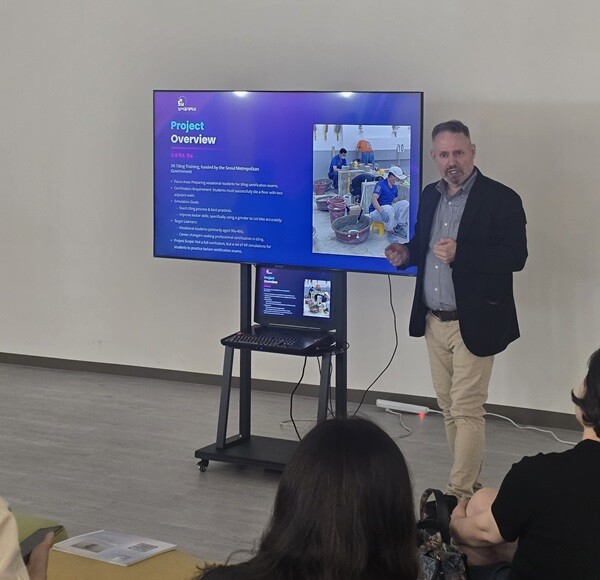 이날 프로그램은 남서울대학교 Robert Dean 부교수의 주도로 진행되었으며, AI 및 XR(확장현실) 기술을 교육 현장에 어떻게 효과적으로 통합할 수 있는지를 중심으로 실습형 콘텐츠와 함께 소개됐다. Dean 교수는 교육용 실감형 콘텐츠의 설계 및 적용 사례를 바탕으로, 기술이 학생 참여와 몰입도에 어떤 변화를 이끄는지를 구체적으로 설명했다.