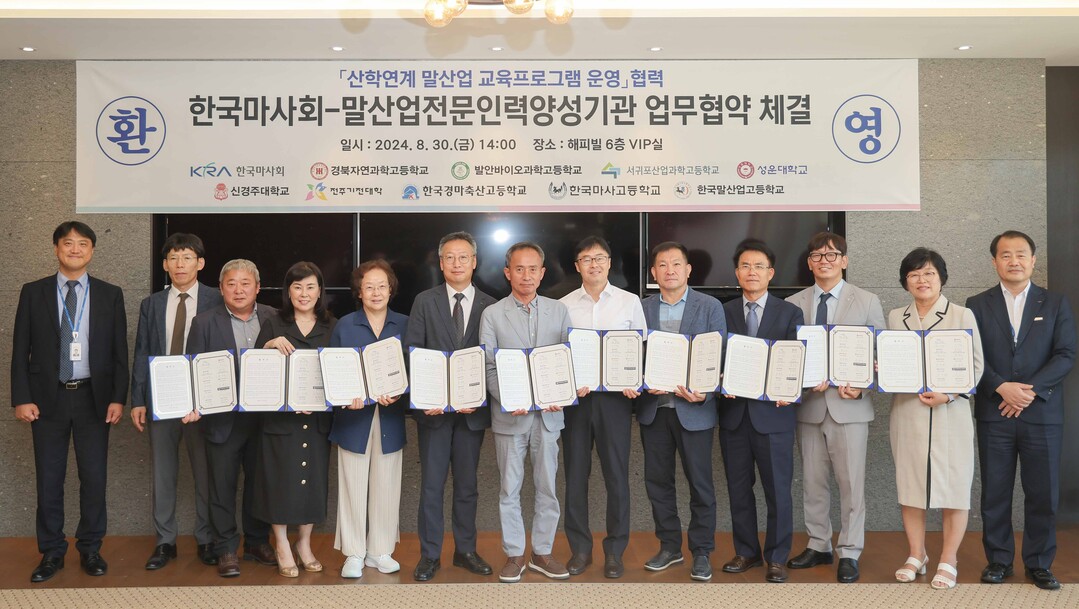 이날 협약식에는 송대영 한국마사회 경마본부장을 비롯한 9개의 말산업 전문인력 양성기관(성운대, 신경주대, 전주기전대 , 한국경마축산고, 서귀포산업과학고, 경북자연과학고, 한국마사고, 발안바이오과학고, 한국말산업고) 대표가 참석했다.