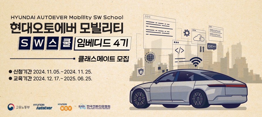 | 한국전파진흥협회RK ‘현대오토에버 모빌리티 SW 스쿨 임베디드 4기’ 교육생을 모집한다. |