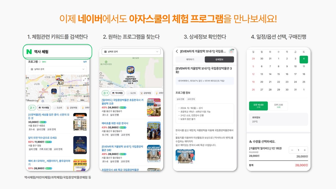 [하비엔뉴스 = 박정수 기자] 아자스쿨은 네이버와 협력해 ‘체험학습 프로그램 검색·예약’ 과정을 최적화했다고 2일 밝혔다.