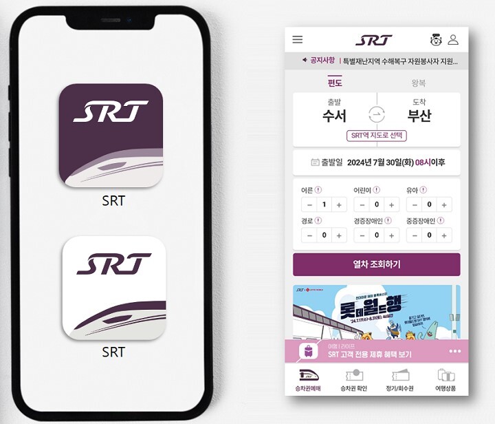 | 새 CI가 적용된 SRT앱과 아이콘. [사진=에스알] |