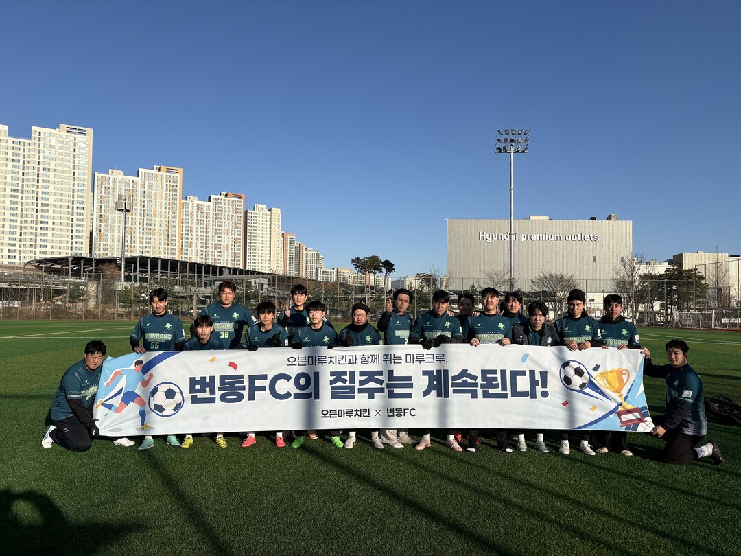 ‘번동FC의 질주는 계속된다! 오븐마루치킨과 함께 뛰는 마루크루’라는 슬로건 아래 진행되는 스포츠크루 4기는 단순한 참여형 이벤트를 넘어 팀 활동에 필요한 현실적인 지원을 중심으로 운영된다. 이번 4기부터는 스포츠 활동 현장에서 실제로 활용할 수 있도록 헤어밴드, 손목 아대, 스포츠 양말 등으로 구성된 ‘마루크루 스포츠 굿즈’를 제작해 전달하며, 번동FC 선수단의 경기와 훈련 환경을 지원한다. 이와 함께 팀 활동을 응원하기 위한 회식비 지원도 병행하며 현장 중심의 브랜드 참여를 이어간다.