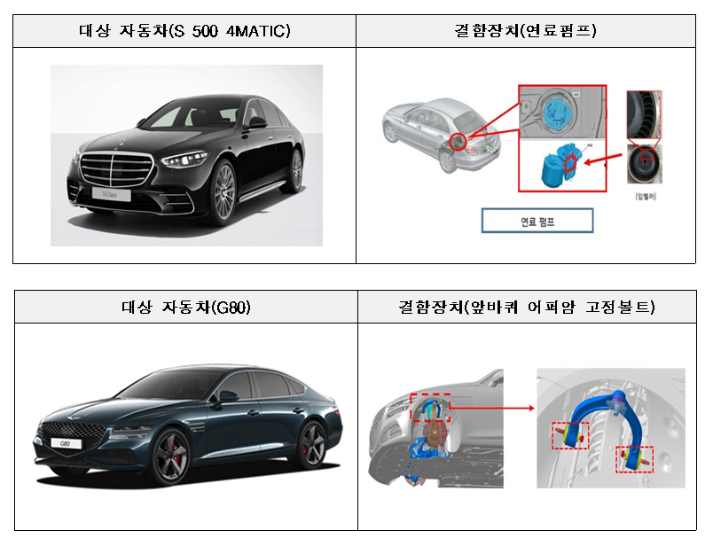 | 리콜 대상 차량과 결함장치. [자료=국토교통부] |