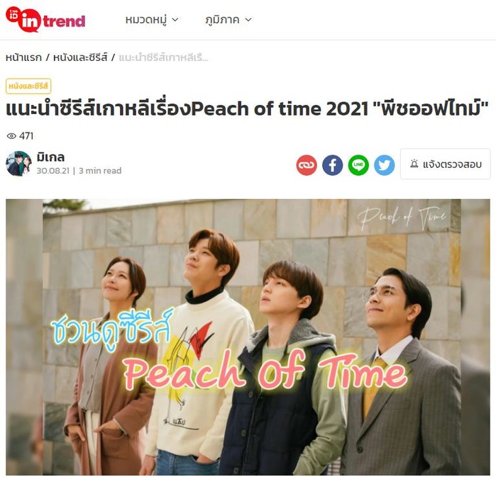 [하비엔=노이슬 기자] 최초의 한국+태국 BL(BOYS LOVE) 드라마 ‘피치 오브 타임’이 8월 30일 동남아시아 11개국에서 전격 방영돼 뜨거운 반응을 이끌고 있다.
