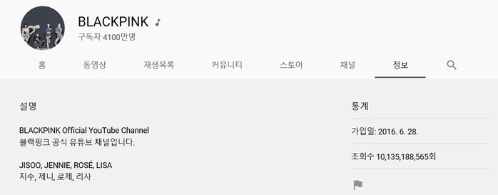 블랙핑크의 유튜브 채널 구독자수도 빠르게 늘고 있다. 불과 일주일 전 구독자 4000만 명을 돌파한데 이어 이날 4100만 명을 넘어섰다.