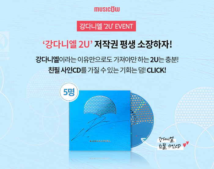 한편 강다니엘은 오늘(19일) 정오부터 첫 번째 미니앨범 타이틀곡 ‘2U(투유)’를 뮤직카우를 통해 팬들과 저작권 공유도 시작한다.