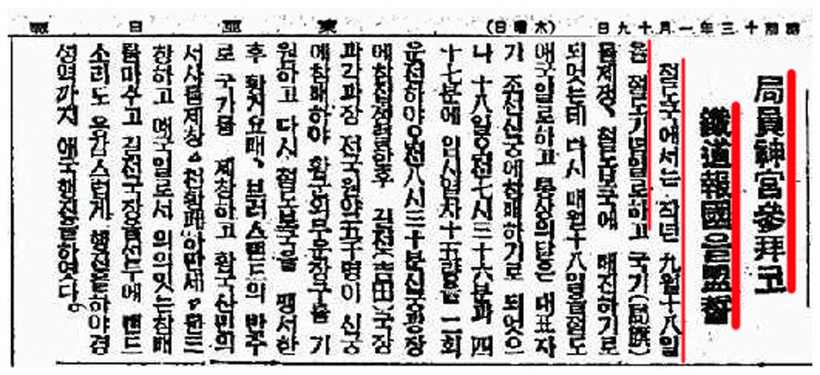예전 철도의 날(9월18일)은 최초의 철도 개통일이라는 의미가 있지만, 1937년 일제의 중국 침략전쟁 당시 한국철도 종사원의 기강 확립을 위해 ‘철도국의 날’로 정하고, 전국의 철도종사원들에게 신사참배를 하도록 했던 날이다.