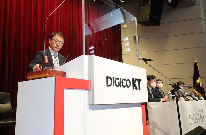 이사 선임의 건에서는 사내이사 2명과 사외이사 1명이 선임됐다. 사내이사로는 KT가 디지코(Digico)로 변화·성장하기 위한 방향을 제시한 경영기획부문장 박종욱 사장과 국내 유무선 통신 분야에서 다방면의 경험과 전문성을 축적한 Customer부문장 강국현 사장이 선임됐다.