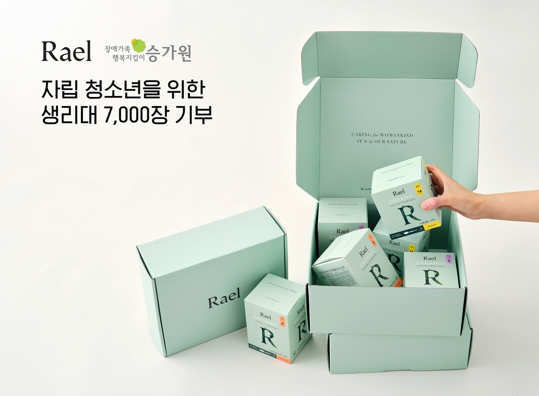 | 라엘이은 ‘행복나눔바자회’ 행사에 생리대 7000장을 기부했다. [사진=라엘] |