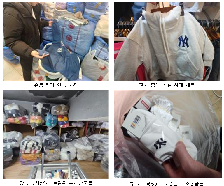 상표경찰에 따르면, A씨 등 도매업자들은 동대문시장(2개소)이나 남대문시장(5개소)에 거점을 두고 MLB 관련 운동복과 양말 등의 위조상품을 전국으로 유통시킨 혐의를 받고 있다.