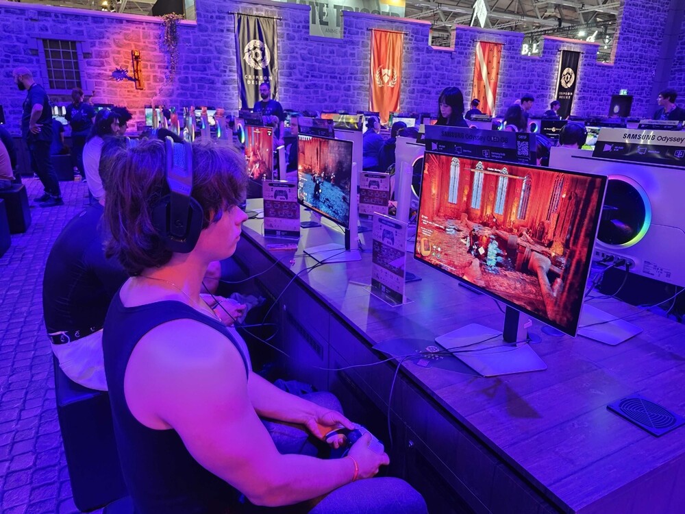 게임스컴 붉은사막 부스는 6홀 메인 통로 양쪽에 2개 부스로 배치해 게임 속 성벽을 형상화한 독특한 디자인으로 꾸몄다. 외부 초대형 스크린 2개를 통해 게임 플레이를 선보이고 부스 정면에 바위에 박힌 검을 포토존으로 설치해 관람객들의 발길을 멈추게 했다.
