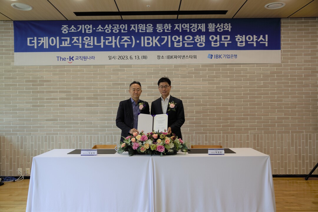 [하비엔뉴스 = 송현섭 기자] IBK기업은행은 을지로 IBK파이낸스타워에서 더케이교직원나라와 ‘중소기업.소상공인 지원을 통한 지역경제 활성화 업무협약’을 체결했다고 14일 밝혔다.