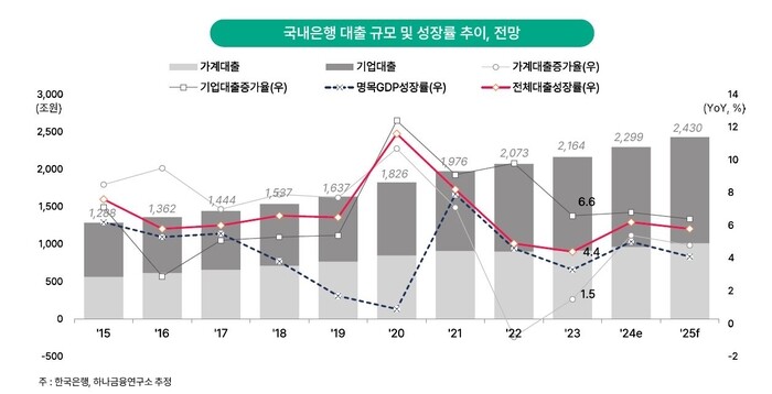 | 국내은행 대출 규모 및 성장률 추이 [출처=하나금융연구소] |