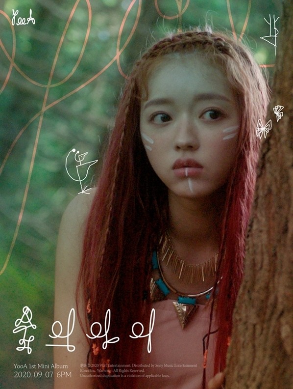 또한 이날 함께 공개된 3장의 티저에서 유아는 숏 커트 헤어로 변신해 시선을 사로잡았다. 푸릇푸릇한 들판에서 머리에 꽃을 꽂고 연두색 컬러의 원피스를 입고 있다. 마치 미소년과도 같은 앳된 얼굴과 중성적인 비주얼은 오묘하고도 순수한 매력을 자아낸다.