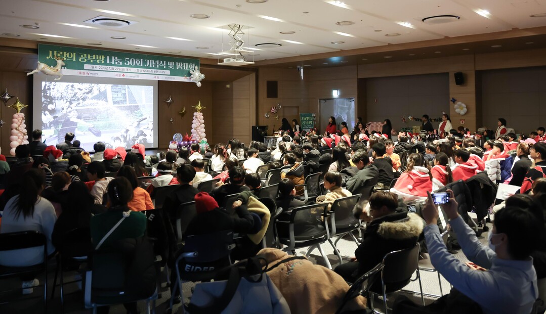 1부 기념식에서는 성남시 지역아동센터에서 사랑의 공부방 50회 후원에 이르기까지 봉사활동에 적극 참여한 NS홈쇼핑 임직원에 감사패와 공로상을 전달했고, 2부 행사에서는 어린이들의 연주와 노래, 댄스 등 문화공연이 이어졌다.