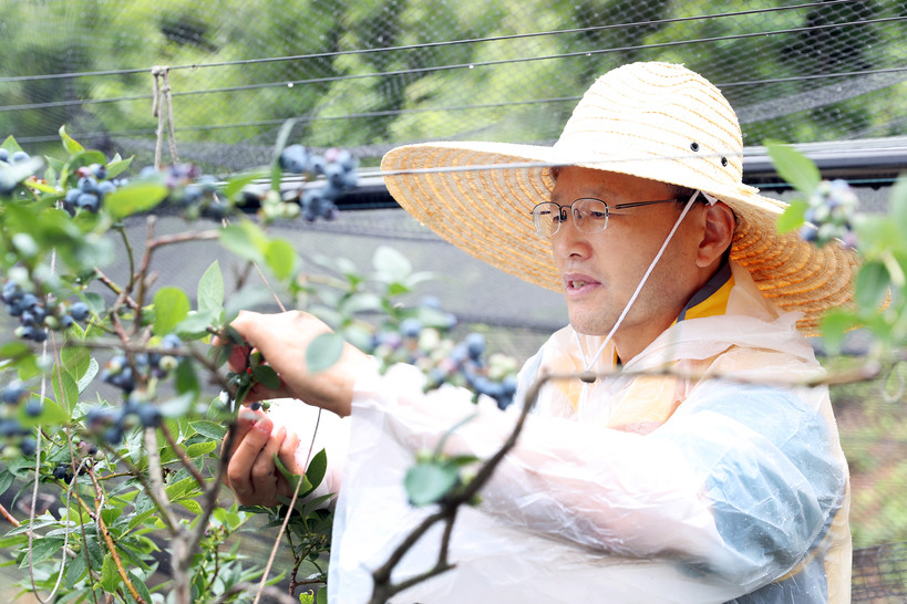 이날 행사에는 공단 임직원 35명이 참혀해 새망치기, 부직포 깔기, 포도 순 따기, 블루베리 수확 등을 진행하며 구슬땀을 흘렸다.