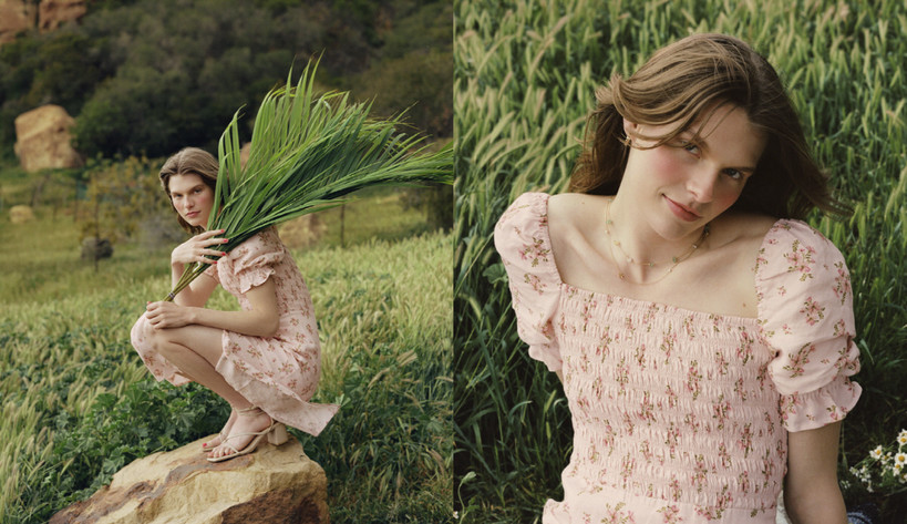 이 가운데 단연 돋보이는 것은 플로럴 프린트의 서머 드레스 컬렉션이다. 스모킹 디테일(천에 잔주름을 잡고 장식 스티치를 하여 무늬를 나타내는 기법의 유럽풍 자수)과 퍼프 숄더, 스위트 하트 네크라인 등의 디테일이 돋보이는 맥시 드레스는 식물성 소재인 리넨, 재활용 원단인 에코베로 비스코스, 코튼이나 오간자와 같은 통기성이 좋은 원단을 사용했다.