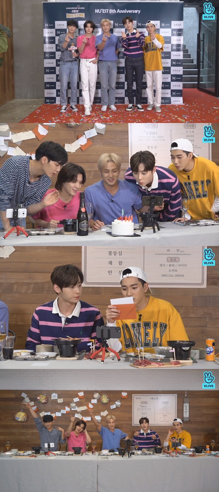 [하비엔=노이슬 기자] 그룹 뉴이스트(JR, 아론, 백호, 민현, 렌)가 데뷔 8주년과 3000일을 축하하는 랜선 회식으로 팬들과 뜻깊은 시간을 보냈다.
