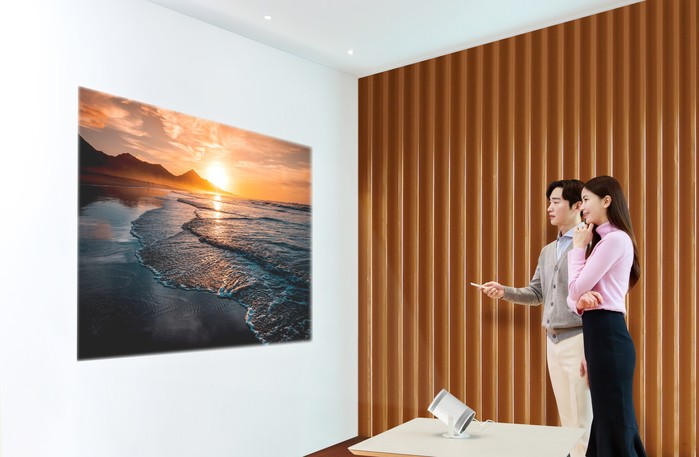 ‘더 프리스타일’은 삼성 스마트TV와 동일하게 국내외 OTT 서비스가 지원되고, 영상 콘텐츠를 감상하지 않을 때는 블루투스·AI 스피커 무드등으로 사용할 수 있다.