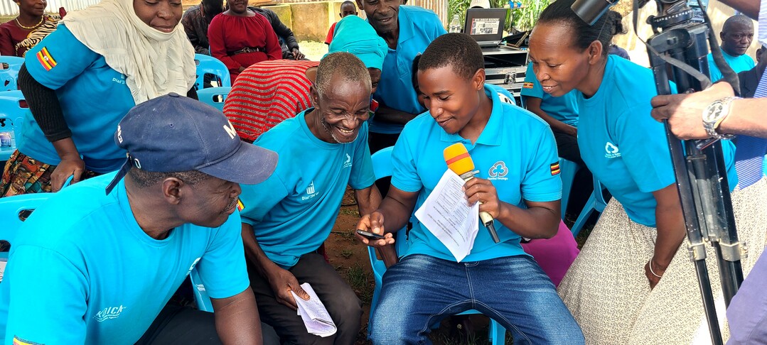 | 우간다 티리보고 새마을금고 회원들이 MTN 연계 새마을금고 모바일 뱅킹 서비스를 이용하며 기뻐하고 있다. [사진=새마을금고중앙회] |