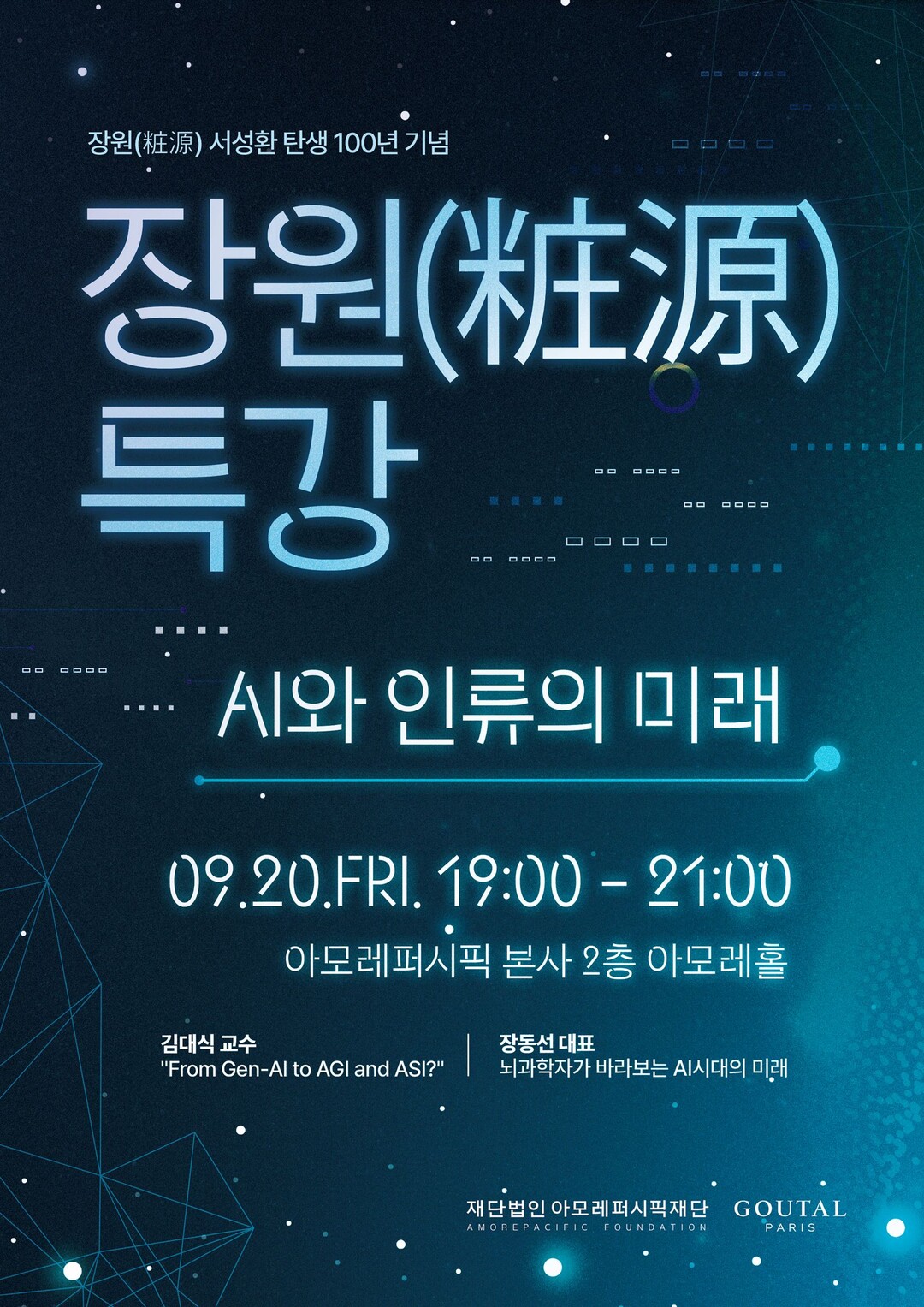 ‘AI와 인류의 미래’를 주제로 열리는 이번 특강은 김대식 KAIST 교수와 장동선 궁금한뇌연구소 대표가 각각 ‘생성형 인공지능에서 초지능까지?’ 및 ‘뇌과학자가 바라보는 AI시대의 미래’를 주제로 강연한다.