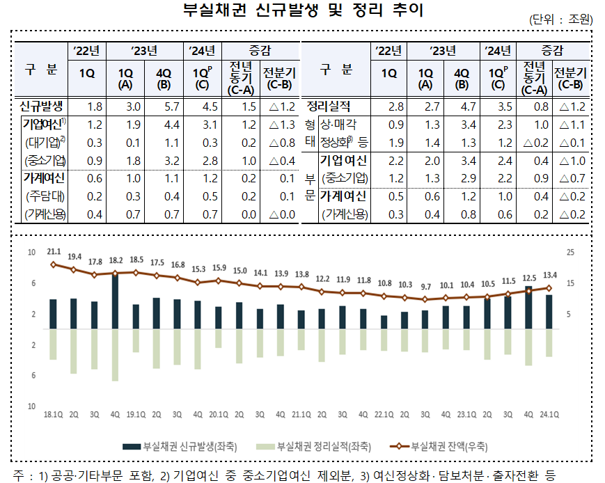 | 부실채권 신규발생 및 정리 추이. [자료=금융감독원] |